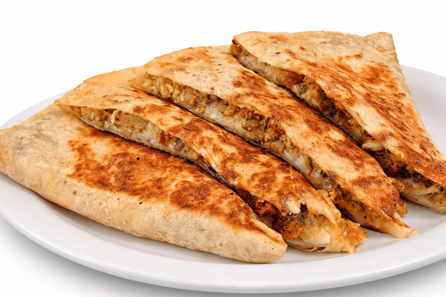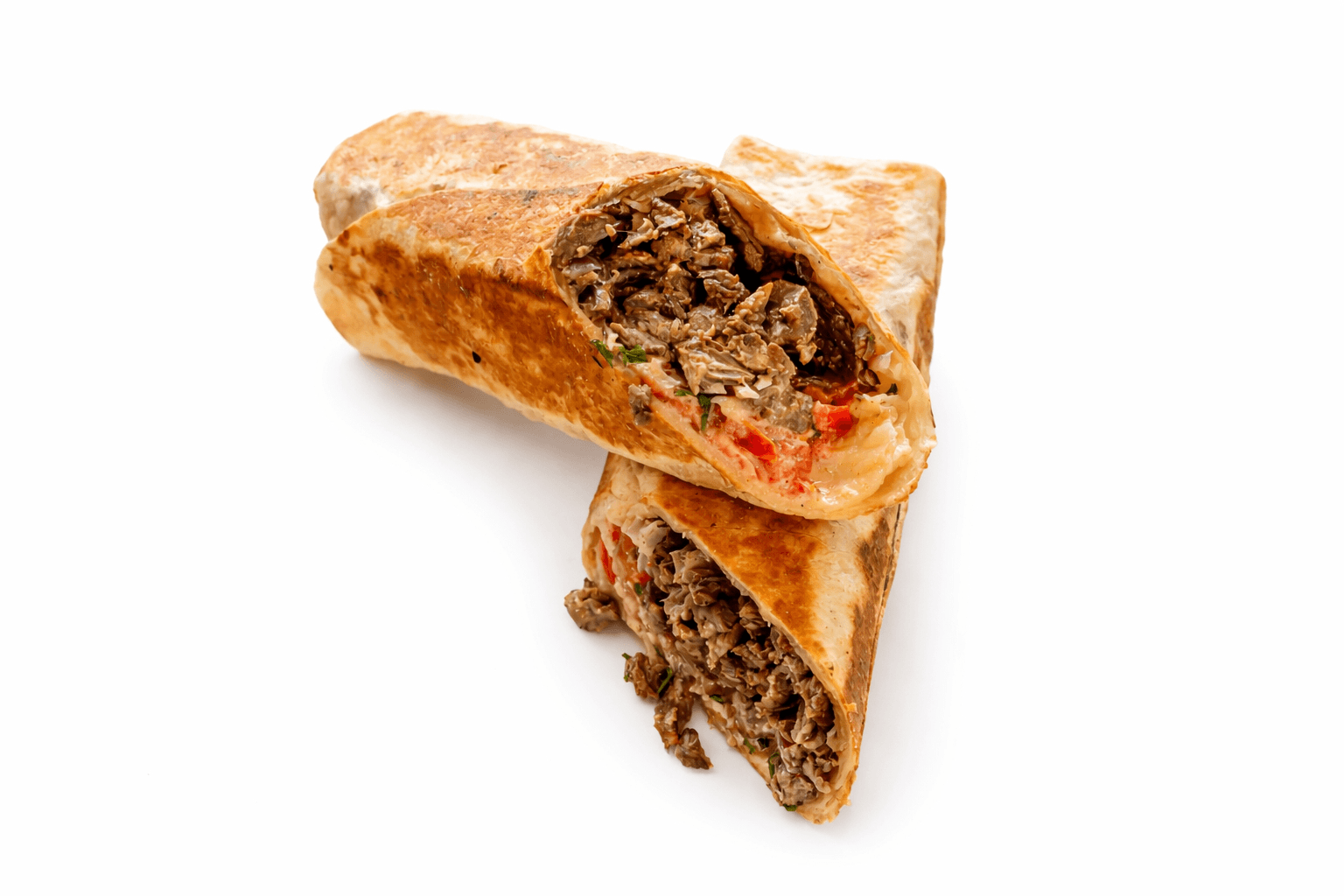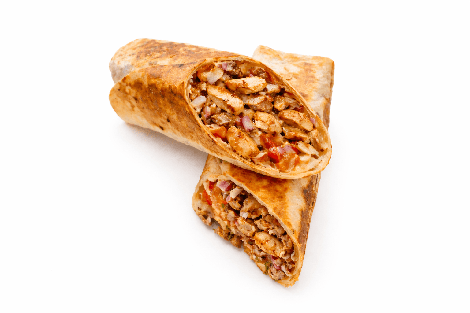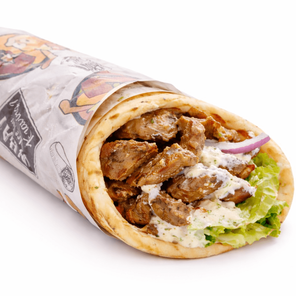 Tortilla filled with cheese, fresh grilled veggies, your choice of meat and spicy kebab sauce