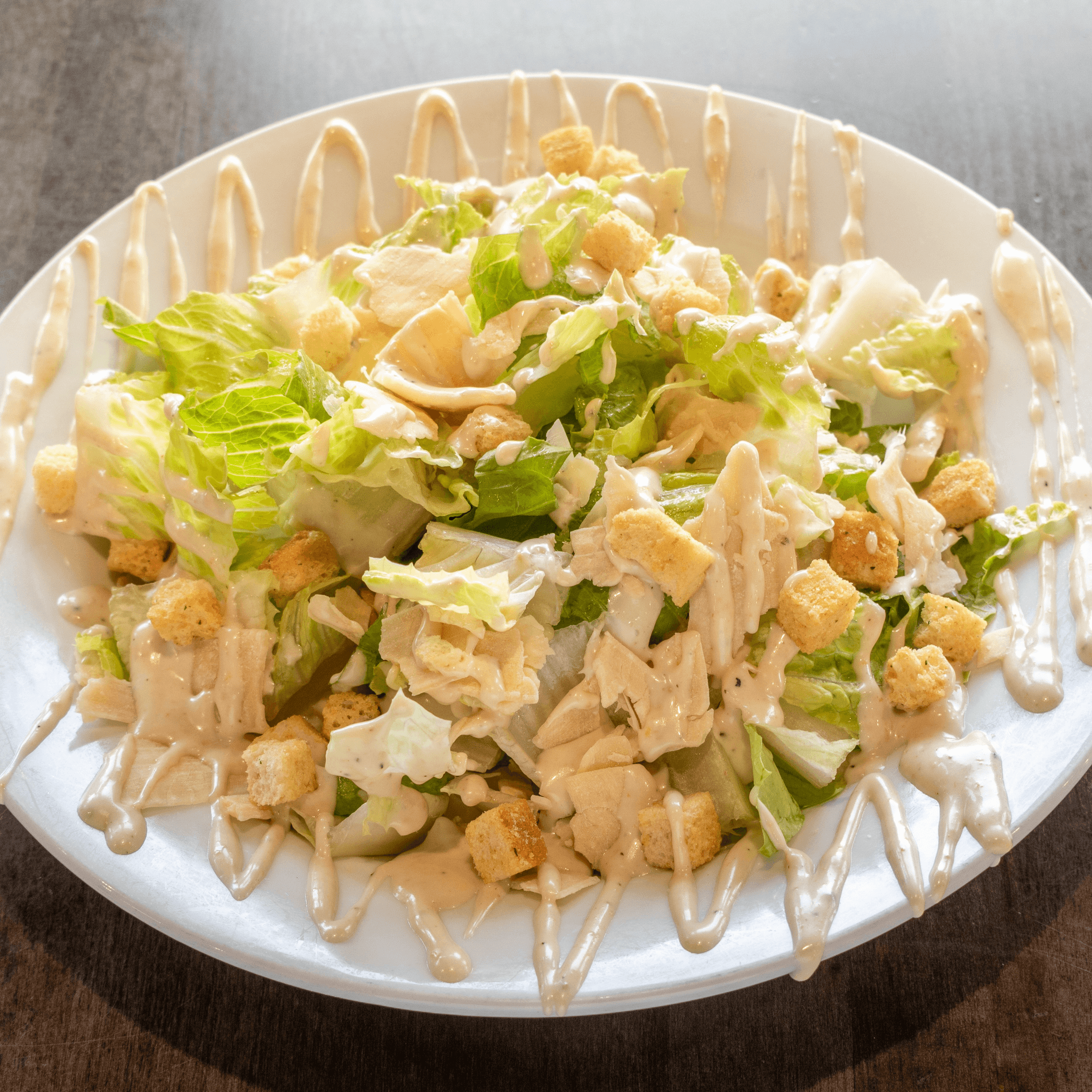 Chicken kebab, diced mushrooms, tomatoes, onions, bell peppers, parsley, kebab sauce & pepperoncini
