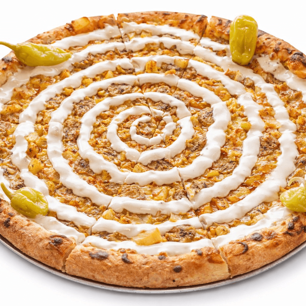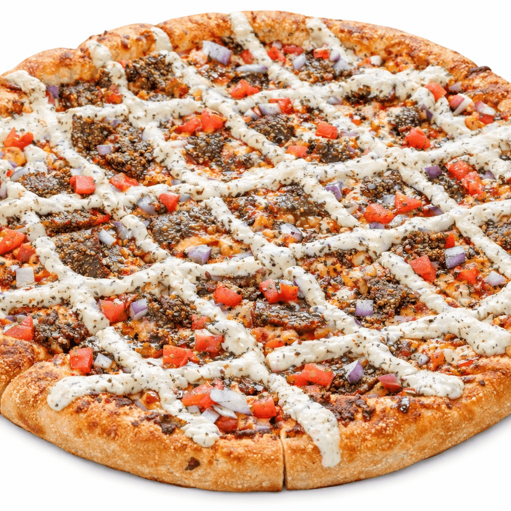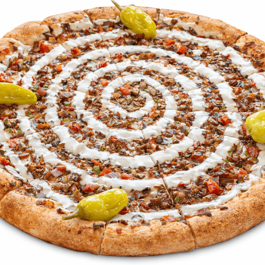 Kebab meat, diced mushrooms, tomatoes, onions, bell peppers, parsley, kebab sauce & pepperoncini