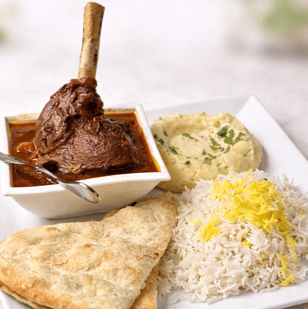 Meltingly tender braised lamb shank, slow-cooked in a red wine-based sauce, served with basmati rice, mashed potatoes, and fresh bread. Served Friday, Saturday & Sunday